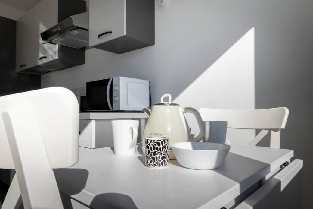 Kaffeemaschine, Spülmaschine, Küchenherd, Kochnische, Mikrowelle, Kühlschrank